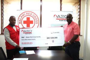 AECI Plant Health, formerly Farmers Organization Limited, has today handed over a MK7Million cheque to Malawi Red Cross Society(MRCS) aimed at Enhancing Food Security and Livelihoods through Irrigation Farming for Smallholder Farmers in Ntchisi.
